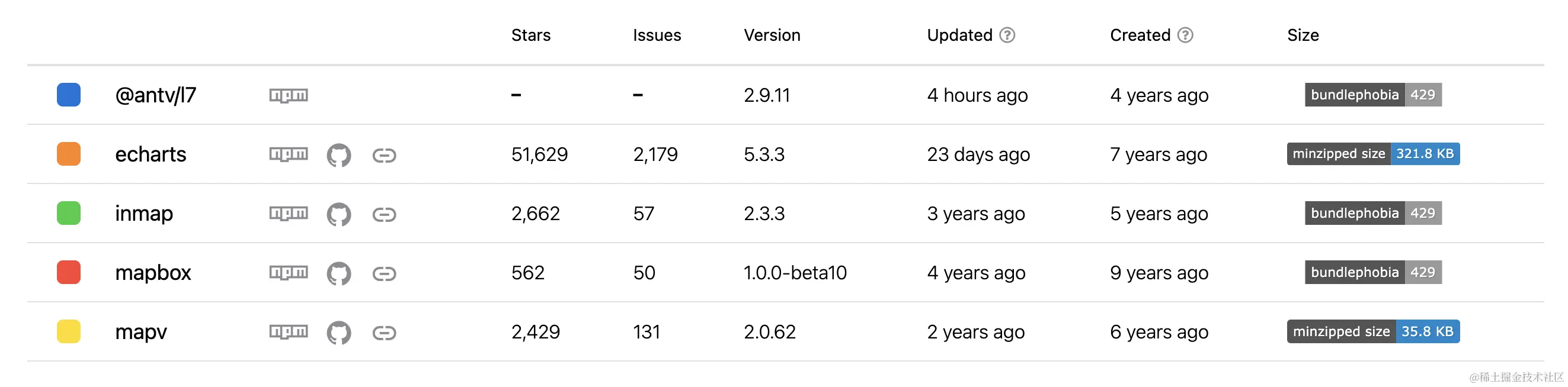 | 维度 | Echarts | inMap | MapV | MapBox | L7 |