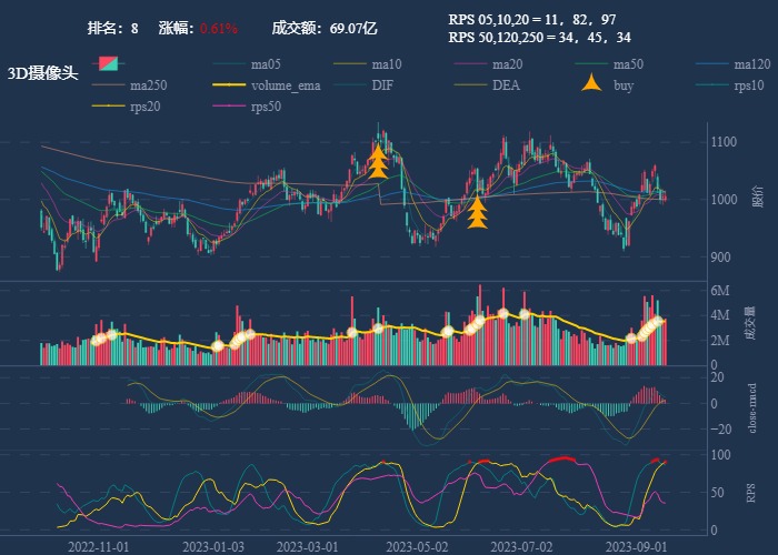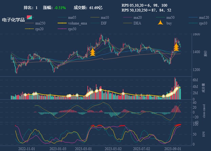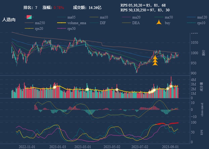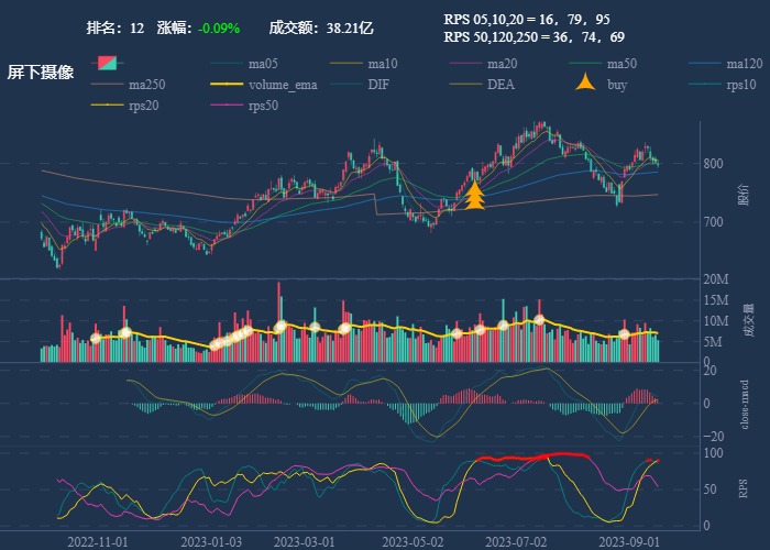 - 一线红:第一次买点出现后往往是顶峰,等回调,macd 反转,rps50 还一直红,第二次买点重现