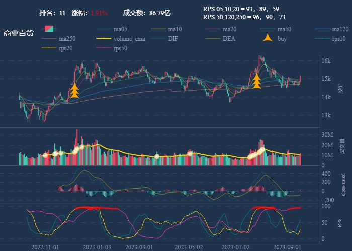 - 第一波行情 rps20 + 10日均线,第二波行情 rps50 + macd反转。