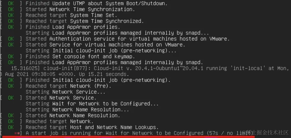 树莓派安装完ubuntu22.04,继续安装完图形桌面后重启变的很慢,卡在下图网络连接3~5分钟后才能进入系统,检查网络配置文件并没有问题,只得尝试修改超时时间,修改后重启效果明显,网络连接也正常,问题算是暂时解决。