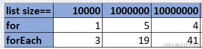 下边来做一下性能测试。在 IterateListTest 的主要方法中,创建了一个列表并使用 for 和 forEach 循环对其进行迭代。