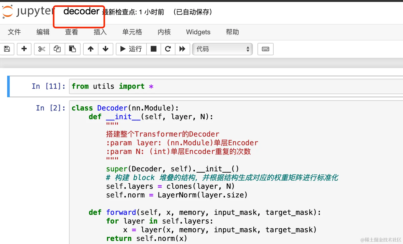 - decoder 中和 encoder 有很大一部分相似但是难点在于其中一个有掩码的多头实现和无掩码的多头的连接,相对复杂,但是比较抽象的掩码部分有测试例子