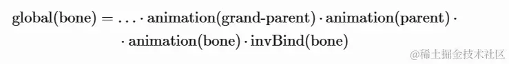 globalTransform(bone)=globalTransform(parent)⋅localTransform(bone)