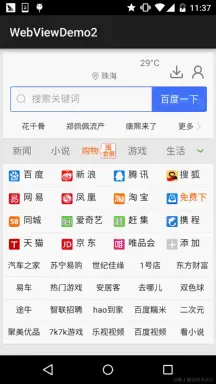 webView.loadUrl("http://www.baidu.com/");          //调用loadUrl方法为WebView加入链接