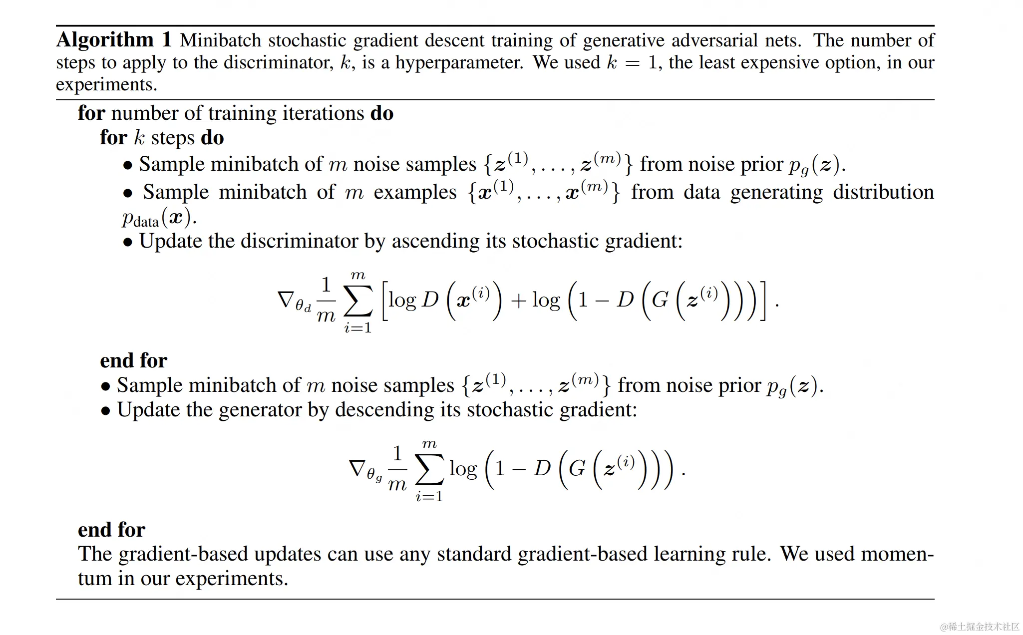 (1)首先,设定一个超参数k,表示在一个step中,我们要更新k次D。