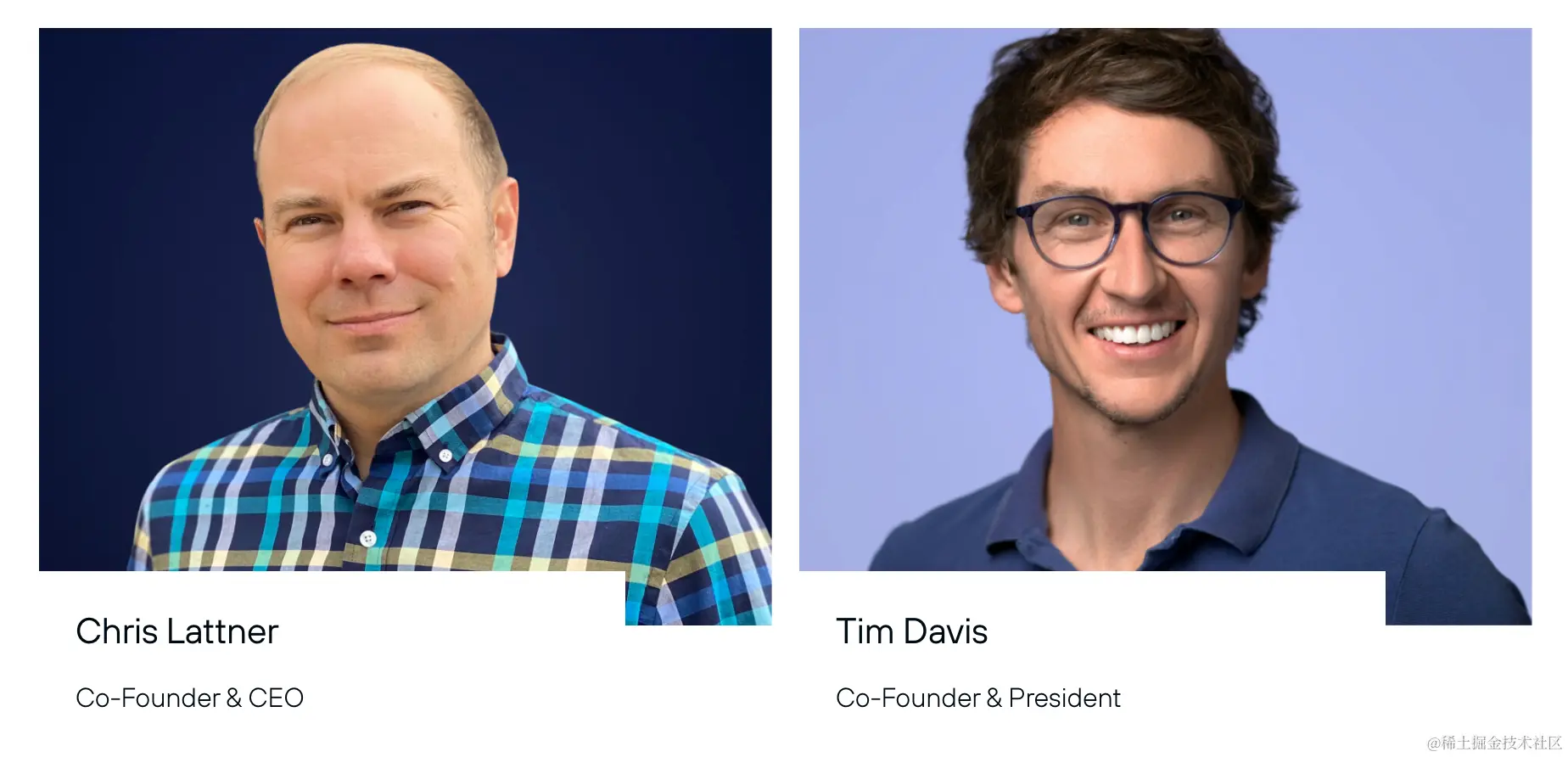 提到这两个创始人,相信有些同学也有所了解,都是业内顶级专家。其中Chris Lattner还被称为“LLVM之父”和“Swift之父”,在苹果、谷歌、特斯拉等多家知名科技巨头里曾带领构建了AI和核心系统。