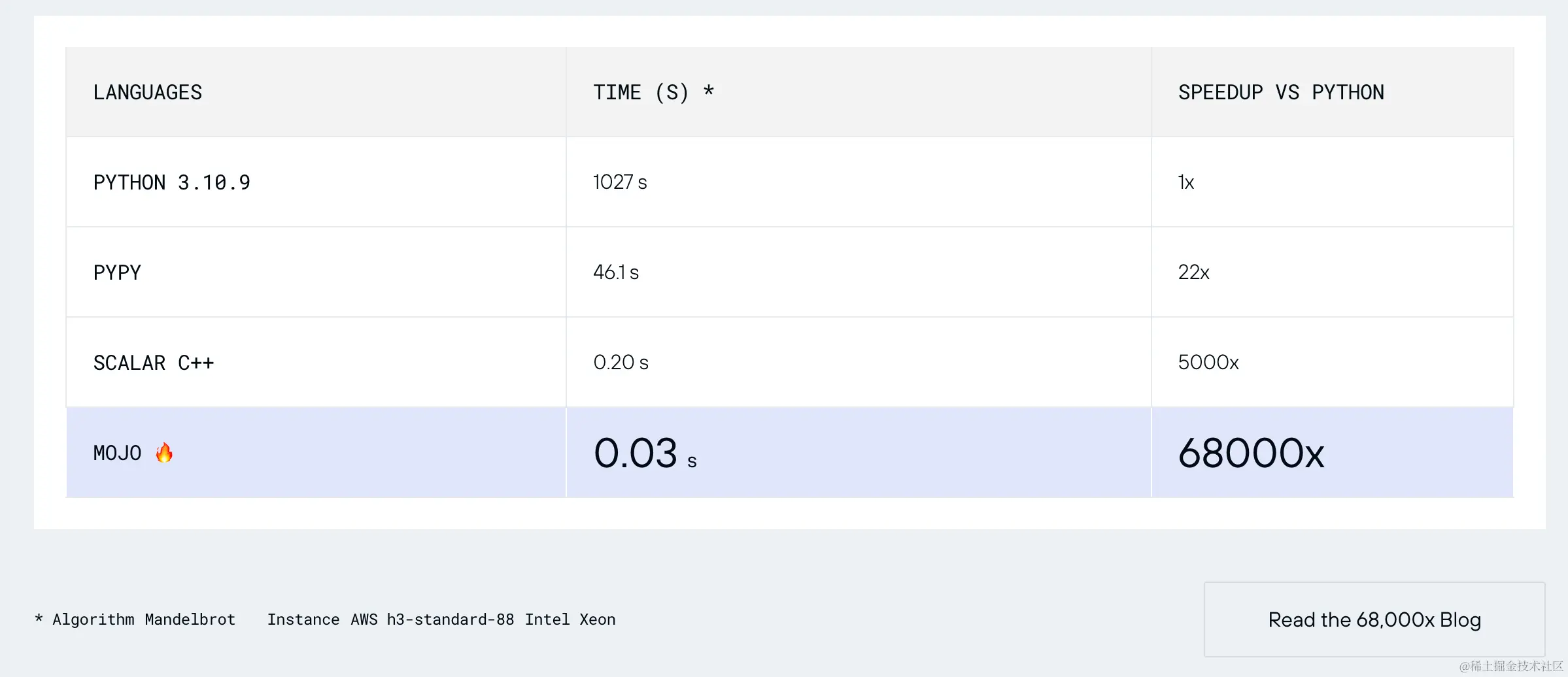 根据Mojo官网的描述,它结合了Python的易用性和C语言的高性能,解锁了AI硬件的可编程性和AI模型的可扩展性。