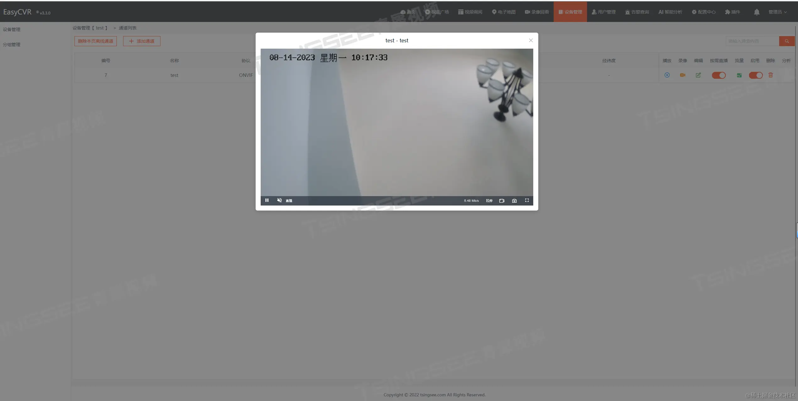 5、添加完成后就可在下图通道处查看到onvif添加的设备。