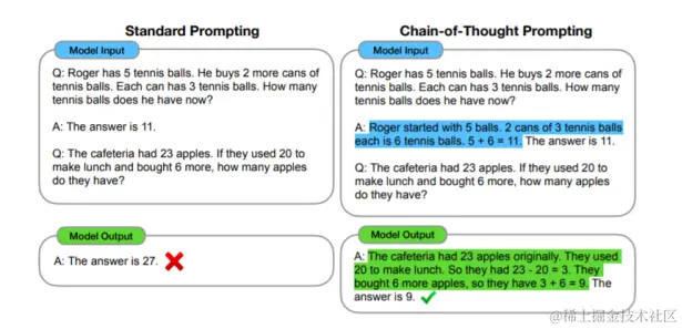 Google于2022年提出了思维链(Chain of thought,CoT)的概念,来提高大型语言模型执行各种推理任务的能力。思维链本质上是一种离散式提示模板,主旨是通过提示模板使得大型语言模型可以模仿人类思考的过程,给出逐步的推理依据,来推导出最终的答案,而每一步的推理依据组成的句子集合就是思维链的内容。