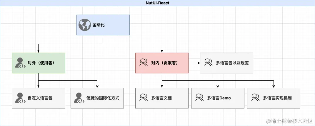 对于 nutui-react 的贡献者而言,组件库需要提供给他们开发多语言组件的能力,其中主要的部分有文档和 Demo 的多语言支持、组件文案多语言替换。