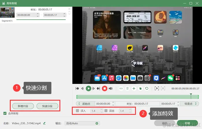 第3步:投屏成功后,就可以开始录制ipad了,录制结束后,我们还可以通过软件自带的剪辑功能,对录制的视频进行编辑(分割视频或者添加特效等),然后保存到合适的位置。
