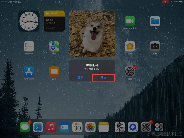第3步:在录制完毕后,再次点击红色录屏图标,或者在状态栏上点击 “停止录制” 按钮,录屏会结束,并生成一个视频文件。