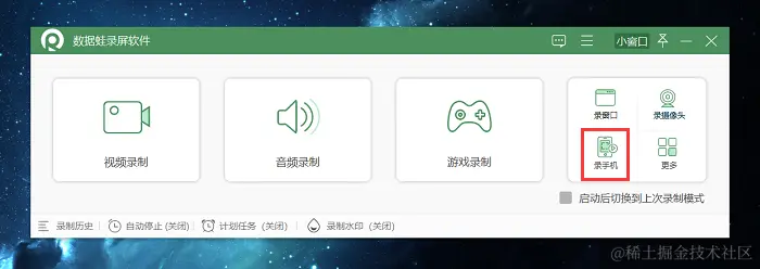 第1步:下载并安装数据蛙录屏软件,在主屏幕上启动它,根据您的需求选择合适的录制模式,录制ipad我们选择 “录手机” 。