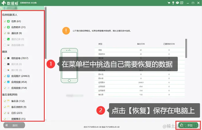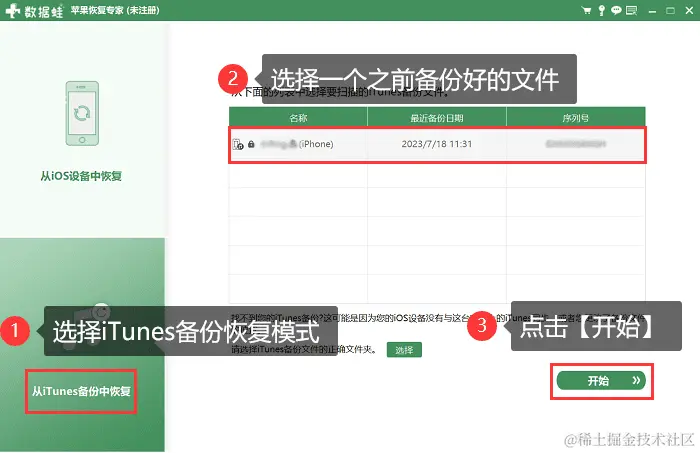 以上两种方法都属于整机恢复,恢复之后会将手机上的所有数据给覆盖掉。iphone备份怎么恢复?如果您有顾虑,并且只想恢复部分数据的话,那么可以尝试下载数据蛙苹果恢复专家来还原您的数据。这款软件通过提取iTunes备份来帮助您更加有针对性地还原部分重要数据。