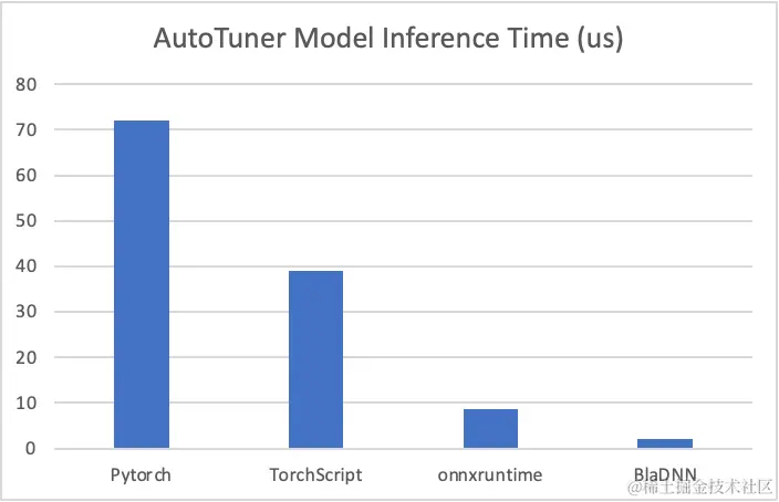 在解决了预测准确率之后,降低DNN预测模型的运行时间和占用的计算资源成为该技术应用于高实时性在线推理场景的关键挑战。直接使用已有框架和引擎(如PyTorch, TorchScript, OnnxRuntime等)搭建预测模型无法满足服务的高实时性需求,我们通过模型系统联合优化,使得AutoTuner DNN模型预测延时降低至2us. 极致的系统优化使得预测模型性能相比于用PyTorch, TorchScript, OnnxRuntime搭建的模型分别提升36倍,19.5倍和4.3倍(见下图),并且推理过程占用的系统资源极低,预测模型只使用一个CPU Core而非GPU资源以确保不对服务的GPU模型自身性能造成任何干扰。因为微秒级的低预测时延和99%以上的预测准确率,AutoTuner不仅被应用于LLM在线推理服务,还成功服务于包括搜推广、语音识别、Stable Diffusion等Dynamic Shape业务场景。