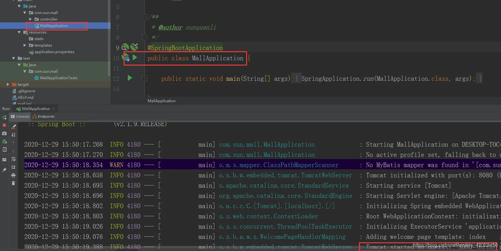 SpringApplication.run(MallApplication.class, args);