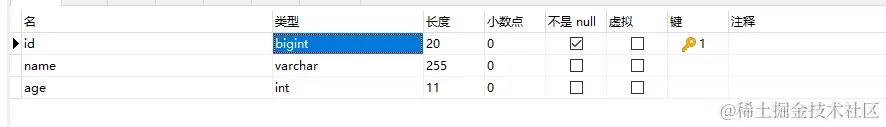 在mall数据库新建user表