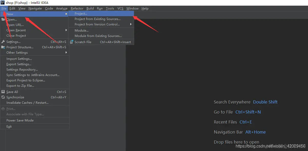 1.打开idea:File->New->Project:
