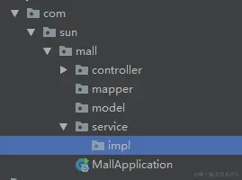 15.在com.sun.mall包下创建model层,mapper层,service层以及实现service的impl层,controller层