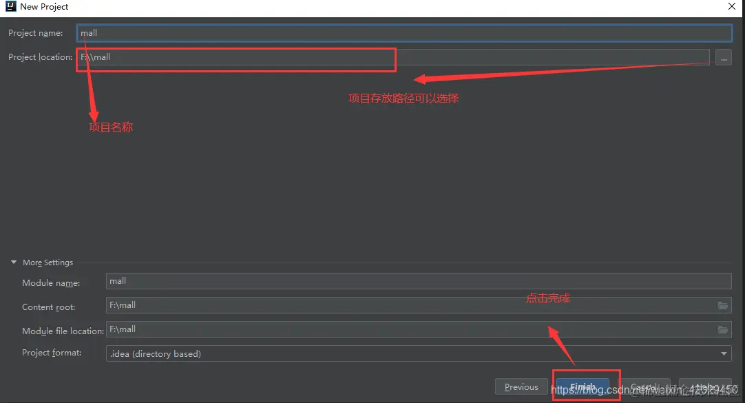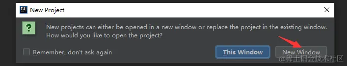 5.选择项目存放路径,点击Finish,选择New Window打开项目