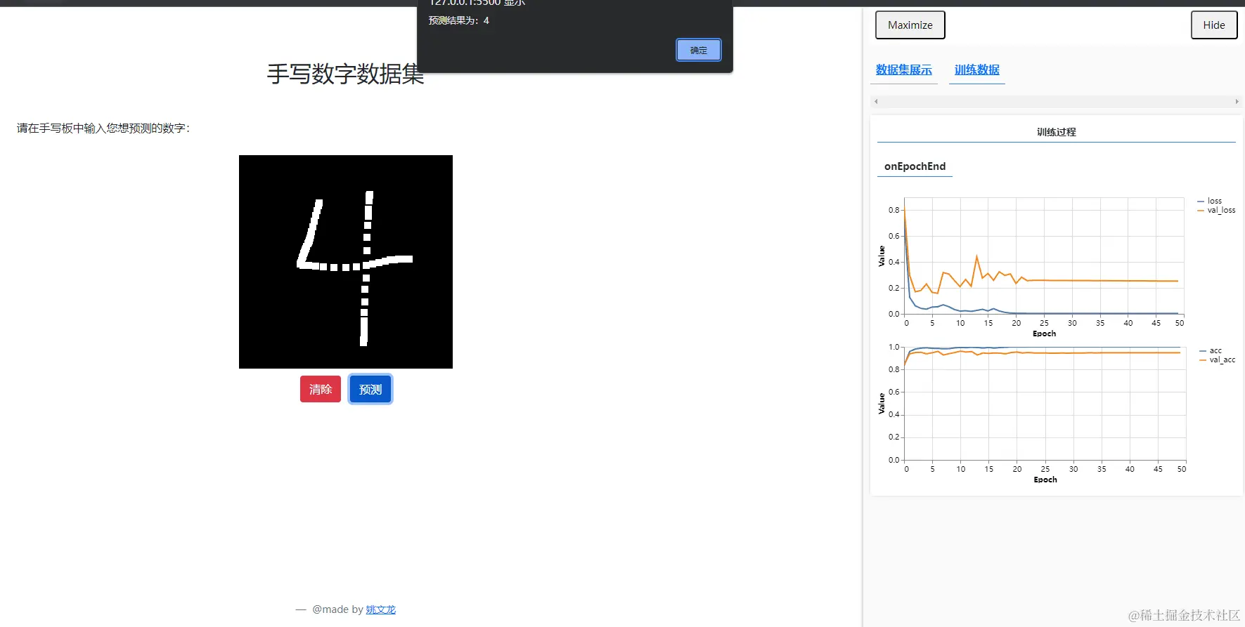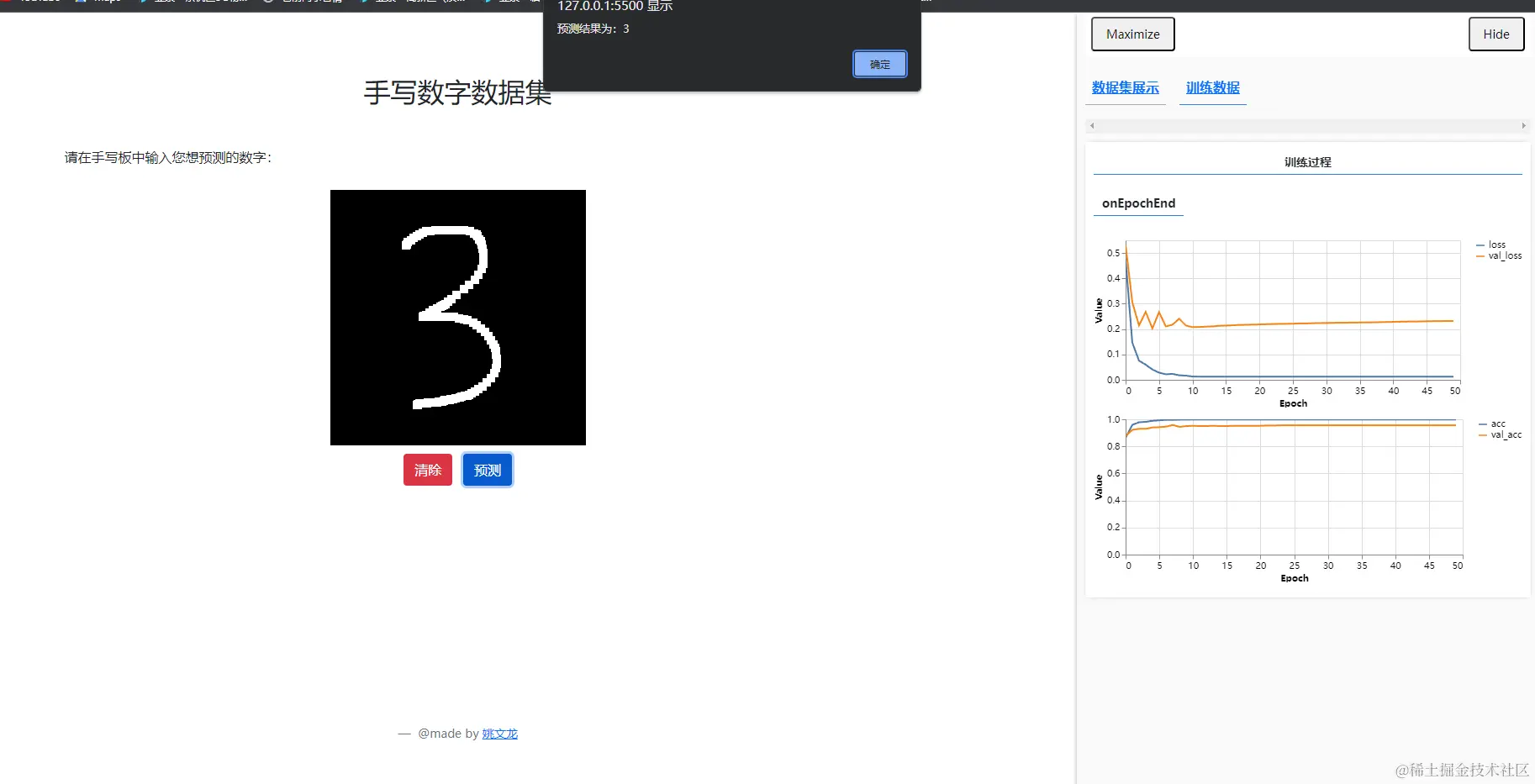 训练好模型后,在画布上绘制0~9的数字并通过模型进行预测