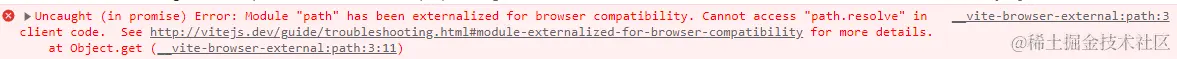 Vite 不支持 node 内置模块,如 import path from 'path' 会报下面的错