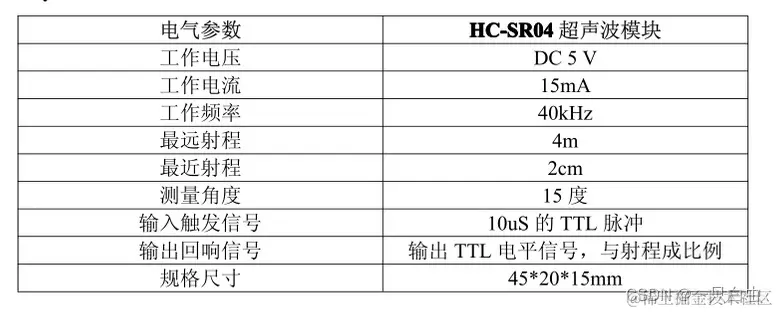 HC-SR04 超声波测距模块可提供 2cm-400cm 的非接触式距离感测功能,测距精度可达高到的非接触式距离感测功能,测距精度可达高到 3mm ;