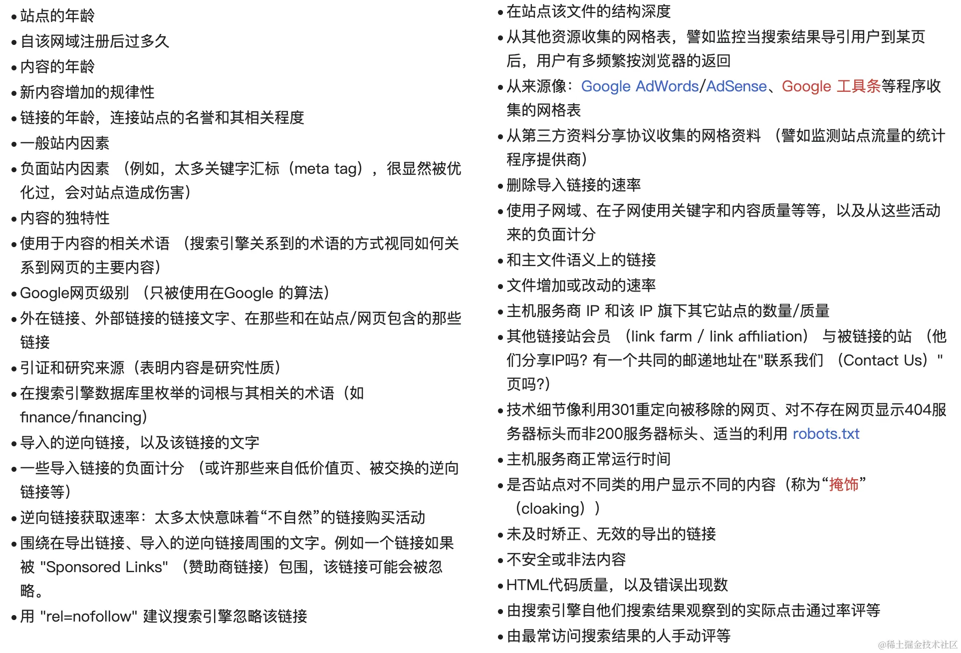 ● 了解搜索引擎索引编排时的影响因子和算法,进行特定的优化