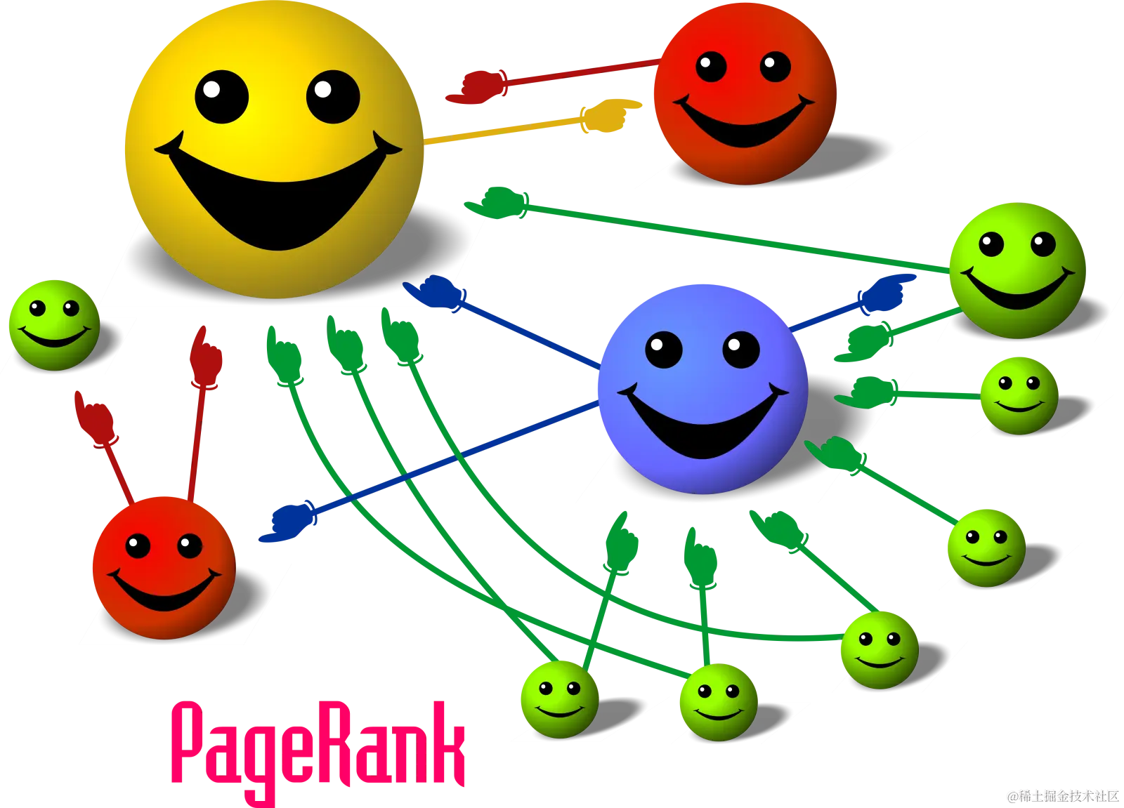 PageRank 本质上是一种以网页之间的超链接个数和质量作为主要因素粗略地分析网页的重要性的算法。其基本假设是:更重要的页面往往更多地被其他页面引用(或称其他页面中会更多地加入通向该页面的超链接)。 其将从A页面到B页面的链接解释为“A页面给B页面投票”,并根据投票来源(甚至来源的来源,即链接到A页面的页面)和投票对象的等级来决定被投票页面的等级。简单的说,一个高等级的页面可以提升其他低等级的页面。(来自Wikipedia)