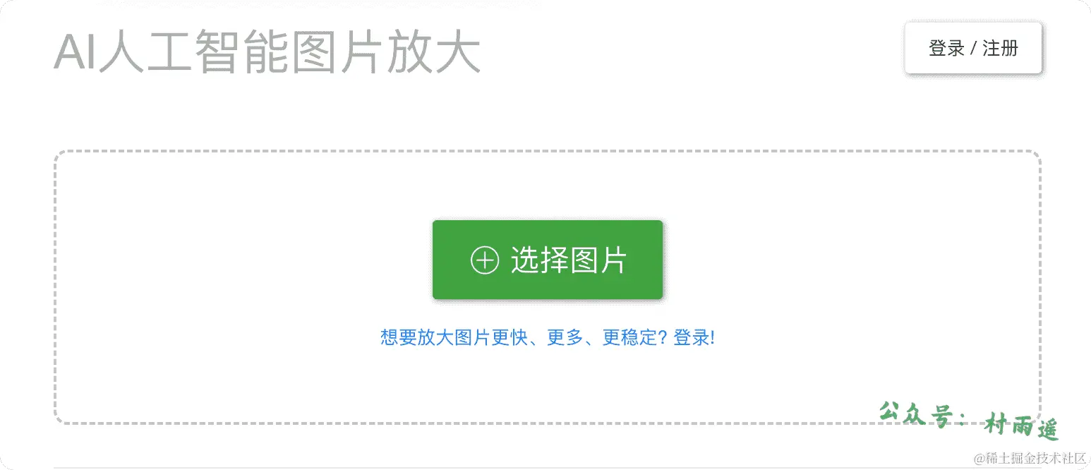 AI 人工智能图片无损放大工具。利用最新的人工智能深度学习技术,将图片噪点和锯齿部分进行补充,从而实现图片的无损放大。目前免费版可以上传 3000 x 3000px 图片, 5M 以内,而付费版最大可支持 50M。而且登录后还提供 API,可以基于它来开发自己的应用。