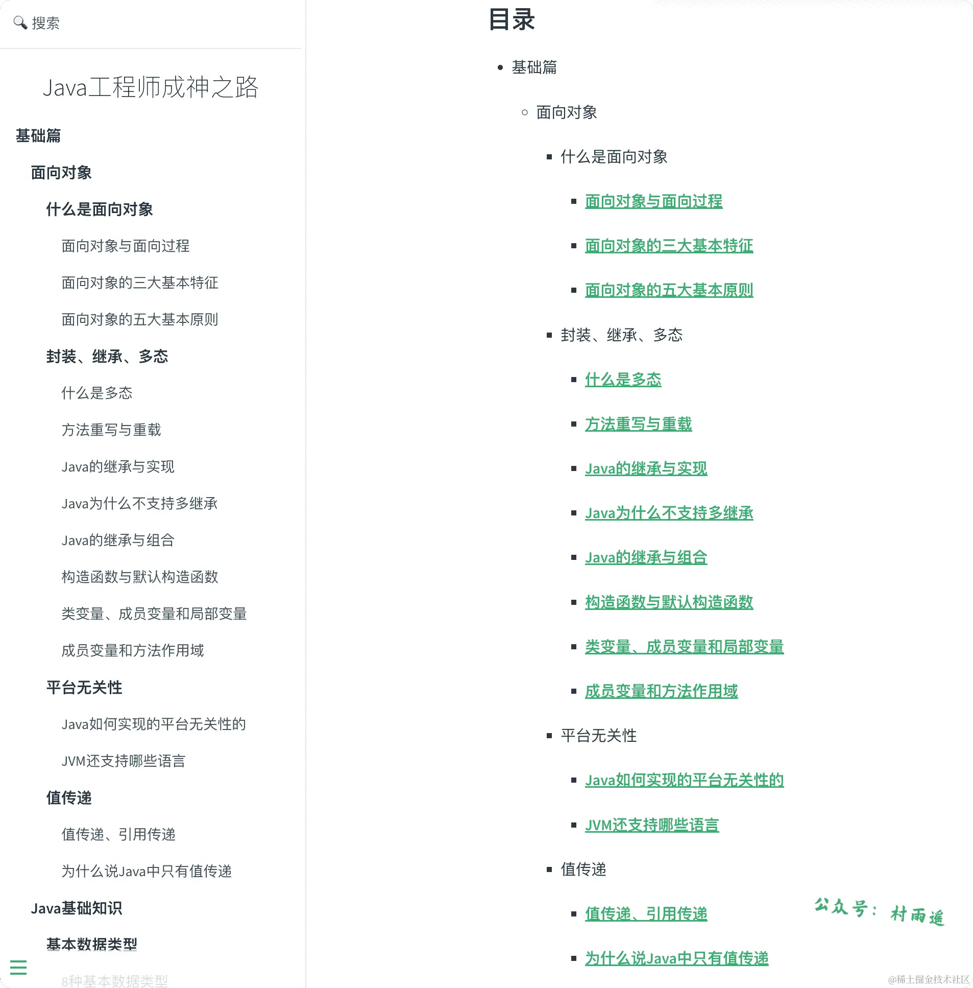 Java 工程师成神之路,作者是阿里巴巴技术专家 Hollis。总结了作为 Java 开发者需要掌握的基础知识点,主要包括面向对象、基础数据类型、自动拆装箱、字符串、序列化、反射等知识点,较为全面地覆盖了 Java 开发者日常工作中需要用到的大部分基础知识。