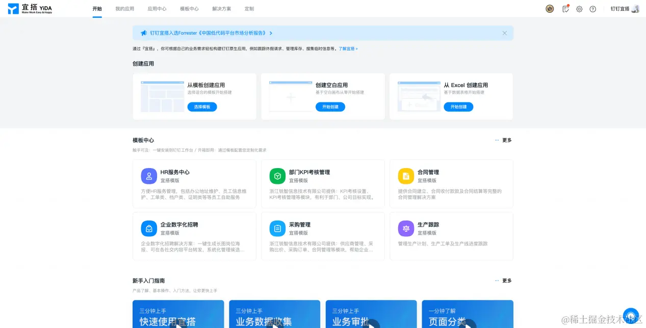 宜搭是阿里巴巴自研的低代码应用搭建平台,可极大提高开发效率。它可以提供从应用创建到集成、部署的一站式服务,用户可以在可视化界面上以拖拉拽的方式编辑和配置页面、表单和流程,并一键发布到PC和手机端。