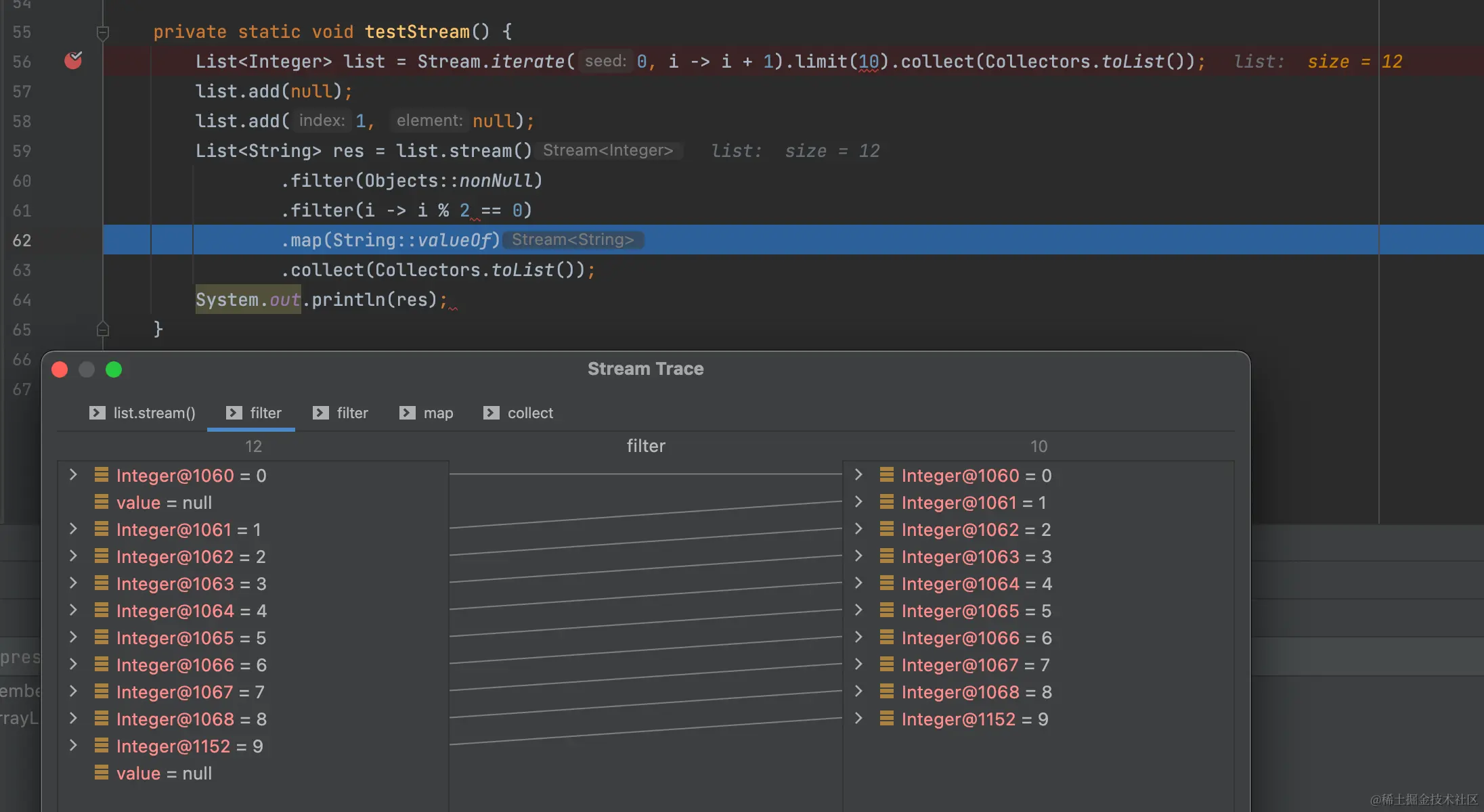功能:当我们暂停在 Stream 的处理代码行时,可以将 Stream 的整个处理流程以图形化界面的形式展示