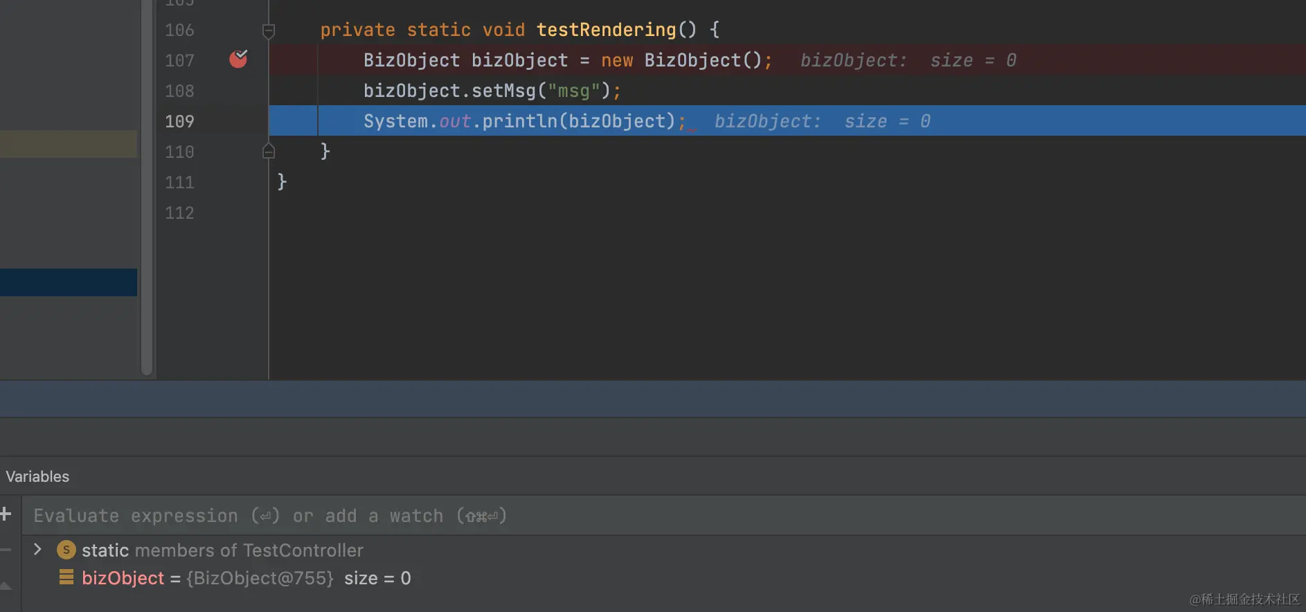 如果我们只想看BizObject中的msg字段,又不想修改渲染器的话,可以通过创建Class Level Watch来达到这一目的。