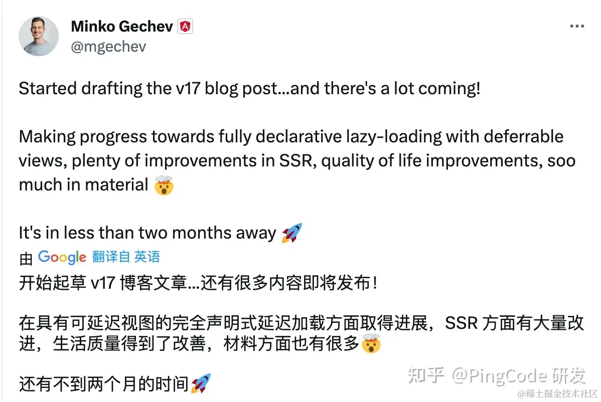 这很多其他特性我就不一一介绍了,这些都是 v14、v15、v16 版本带来的新特性,v17 已经在路上了,Angular Team 负责人已经开始写 v17 的博客了,一大波好特性即将到来。