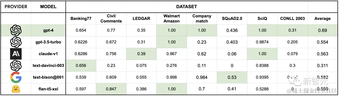 而其他多个模型(如 text-bison@001、gpt-3.5-turbo、claude-v1 和 flan-t5-xxl)也实现了很好的性能:
