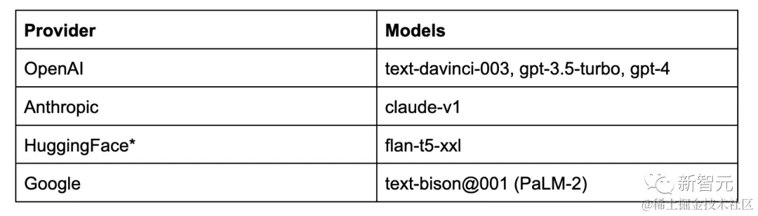 表 2:用于评估的 LLM 提供者与模型列表