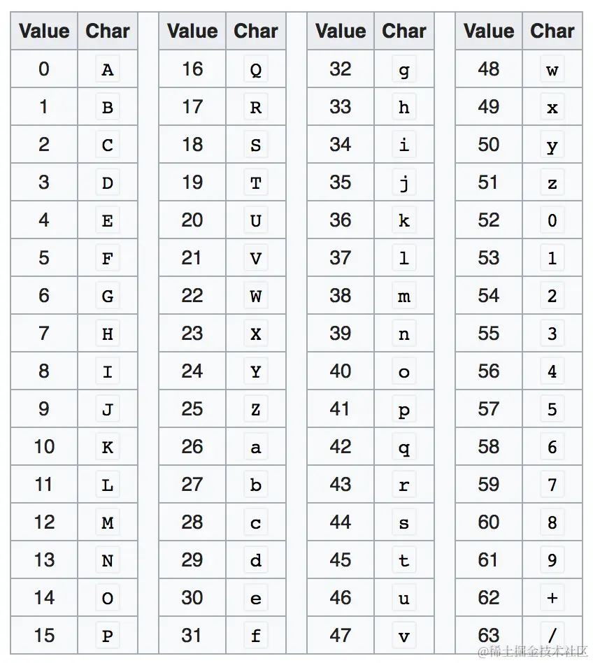 // 对照base64表