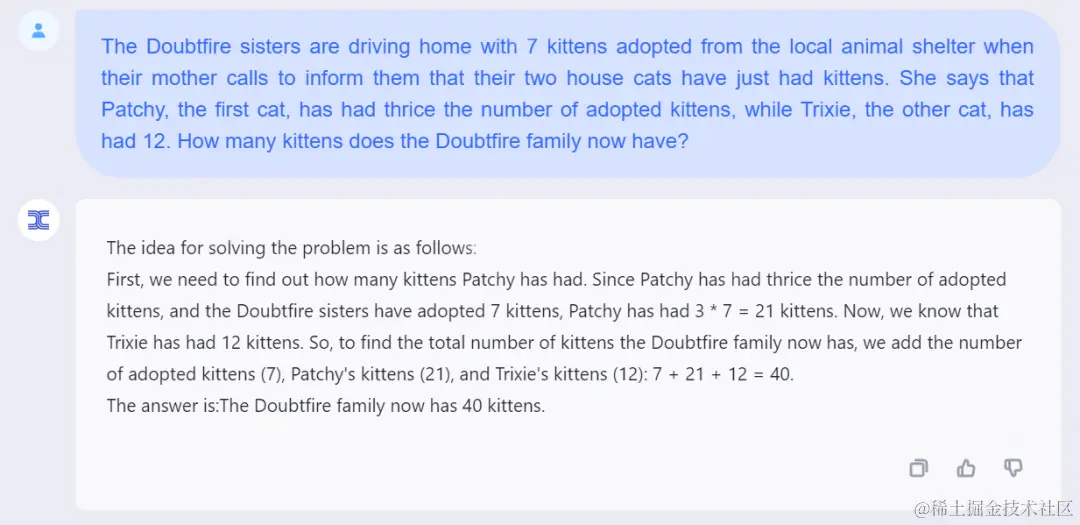 但是可以看到,相比 GPT-3.5,天工大模型的解题思路更简单直接,解题步骤也更少更短。