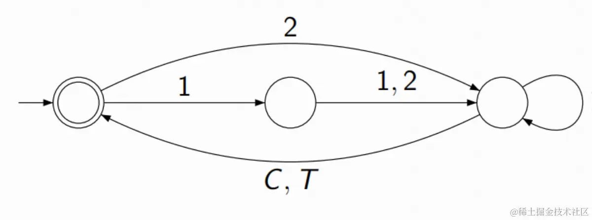 通过上面的分析,可以发现在Monarch中有一个比较核心的概念:state,state表示一种语言的状态。为了易于理解Monarch的工作机理,我们将从词法分析中常见的有限状态机入手,理解一下它在词法分析器中的作用。