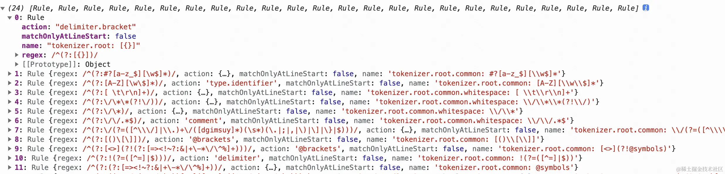 Monaco中的一些token规则示例: