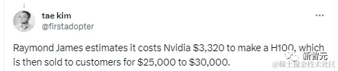 业内专家曾称,英伟达 H100 的利润率接近 1000%。