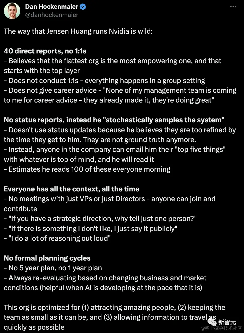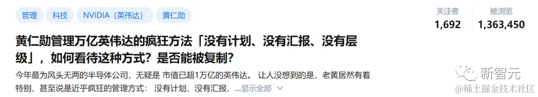 最近同时大火的,还有黄仁勋管理英伟达的方法。