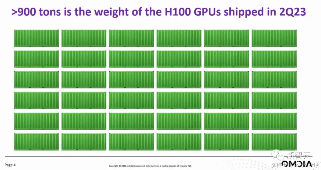 今天,市场研究公司 Omdia 给出了让我们更容易理解的单位——816 吨 H100!