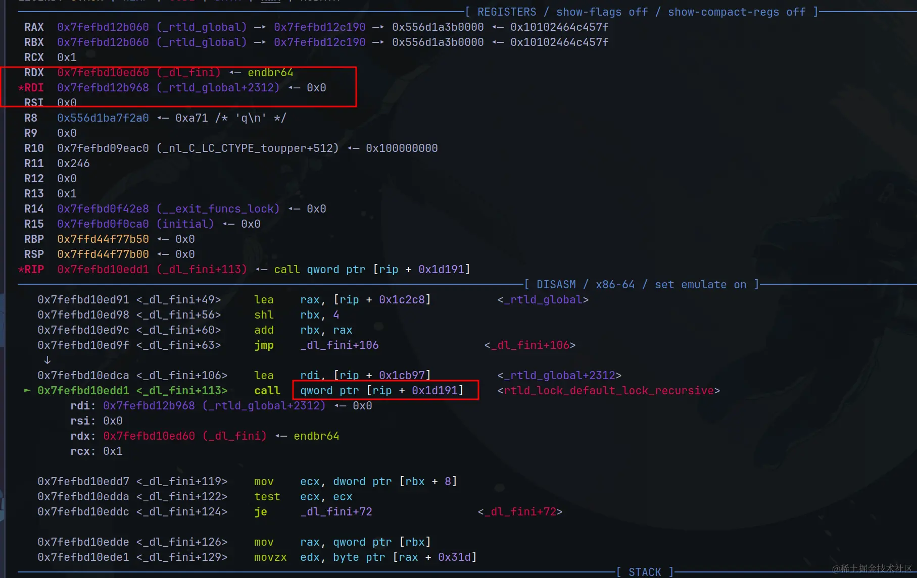 首先是p &_rtld_global(看地址),他有一个rtld_lock_default_lock_recursive和rtld_lock_default_unlock_recursive的元素可以改来调用。