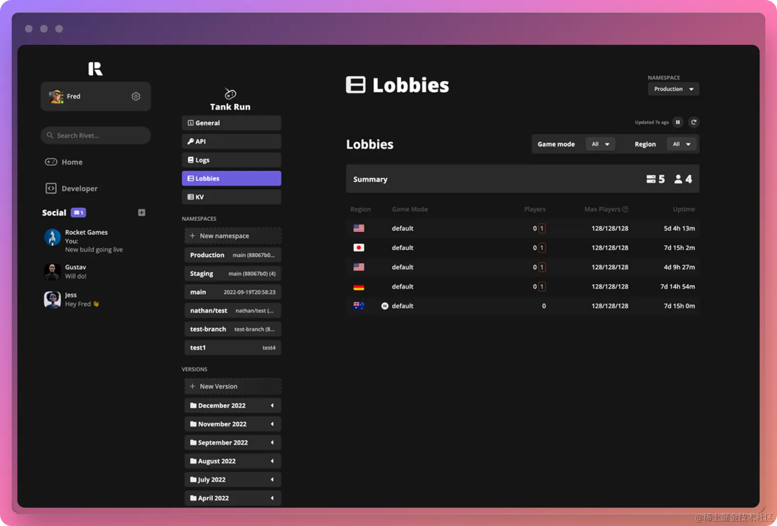 Rivet 是一个管理游戏服务器、匹配和 DDoS 防护的开源项目,让你专注于构建游戏。