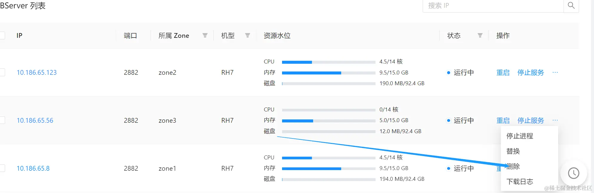 集群->总览,OBServer 列表中删除 zone3 的 OBServer,相当于在该节点卸载 OBServer 服务,等待任务结束。