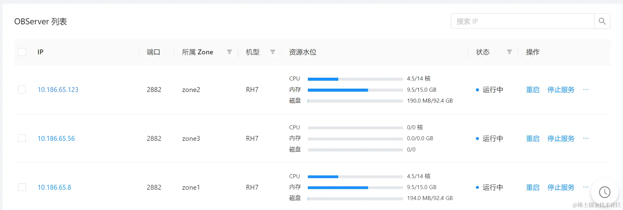 OCP 集群总览页刷新出 OBServer 列表。