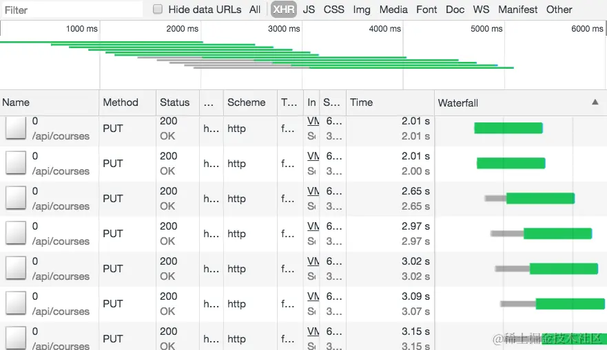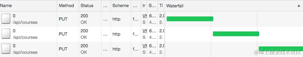 这个确保了保存操作按顺序处理。但如果用户多次点击了保存按钮,会发生什么呢?下面是我们在网络日志中会看到的内容: