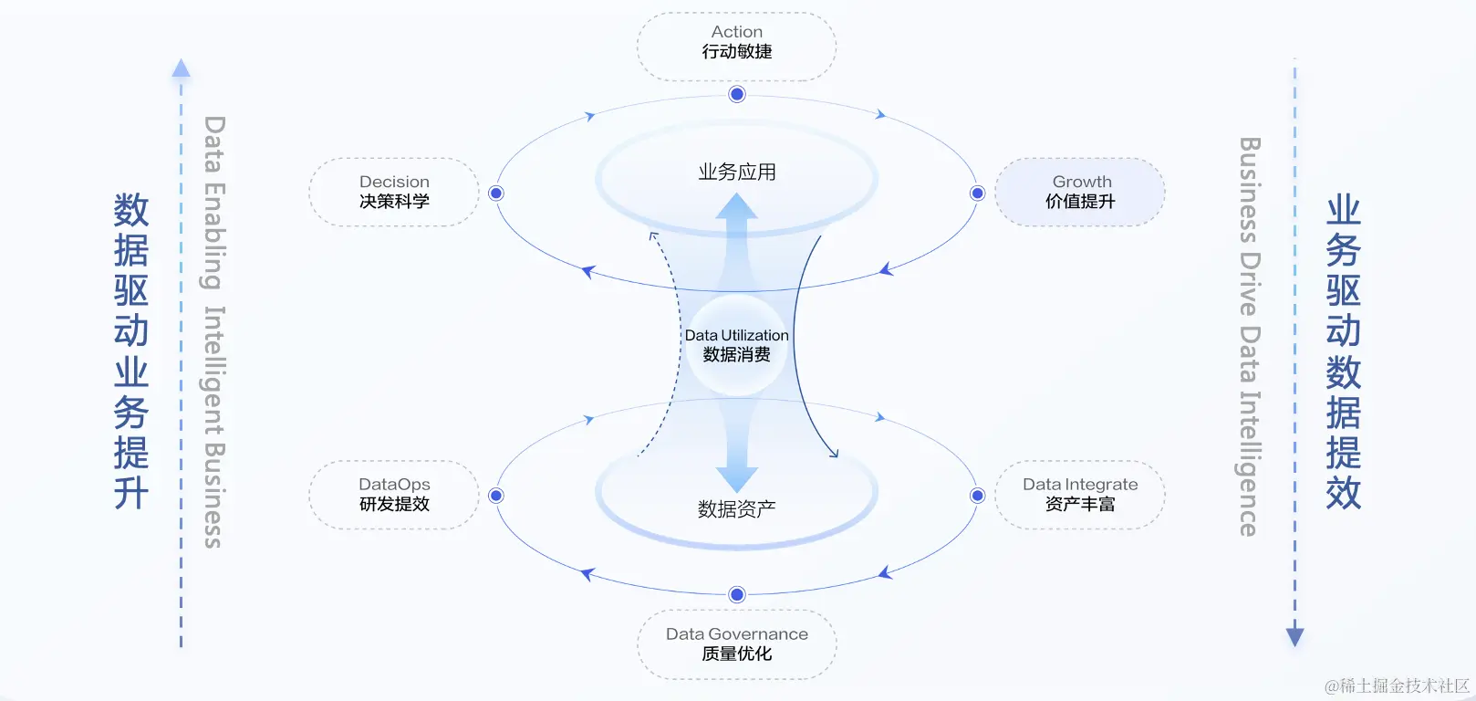 数据作为新型生产要素,正支撑企业的数智化转型。但企业数字化建设也存在管理成本高、数据产品使用门槛高、数据资产价值不够的问题,其原因在于业务和数据之间没有形成双向良性驱动。